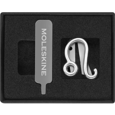 Moleskine Leo Pin for Notebook or Diary, Zodiac Symbol Pin, Personalise Elastic Closure, Personalised Gift Ideas, Silver Colour