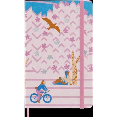 Moleskine Limited Edition Notebook, Sakura Lined Layout and Fabric Hardcover, Large 13 x 21 cm, Bicycle Theme Dark Pink Colour