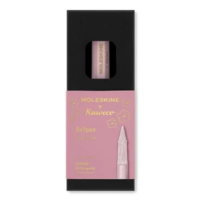 SAKURA PEN: Refillable Moleskine x Kaweco ballpoint pen in pink ABS plastic for a comfortable writing experience REFILLABLE: Includes a ballpoint pen and a 1.0mm G2 metal refill with blue ink GIFT BOX: Supplied in a reusable cardboard box with the inscription “In case of loss” and a Sakura-themed sleeve MOLESKINE X KAWECO: designed for those who appreciate the act of capturing ideas by hand; everything begins with notes written down with a pen SAKURA INSPIRATION: Capture new ideas with this new collection, a Japanese symbol of rebirth and the fragile, fleeting nature of things, to turn inspiration into lasting projects