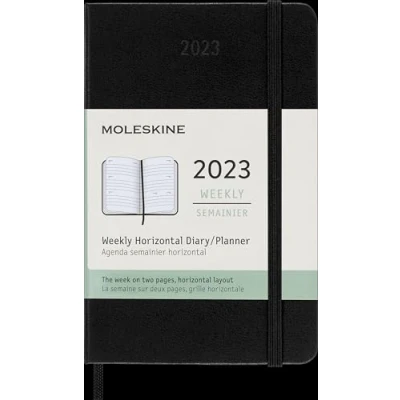 Moleskine Weekly Planner 2023, 12 Month Diary with Horizontal Layout, Planner, Hard Cover, Pocket Size 9 x 14 cm, Colour Black