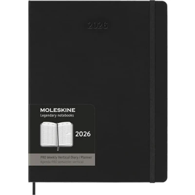 Moleskine Weekly Planner, Vertical Pro Agenda 12 Months 2025, Hard Cover and Elastic Closure, Black Color, Extra Large Size 19x25 cm
