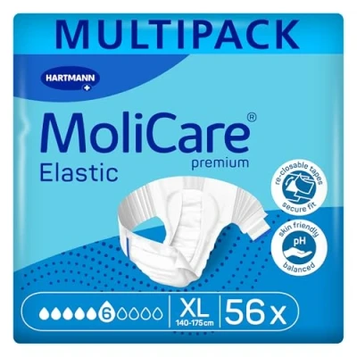 MoliCare Premium Elastic Unisex Disposable Slip: Discreet Use for Woman and Men with Incontinence; 6 Drops, Size XL, 4 Packs of 14 (56 Pieces)