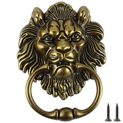 MATERIAL: Made of sturdy zinc alloy, not easy to rust or fade SIZE: Lion door knocker measures 6"×4.5", the distance between two mounting holes is 1.97", screw dimension is 3.5mm×25mm UNIQUE DOOR KNOCKER: Attractive lion head design makes a first impression on any front door, accents the door perfectly EASY TO INSTALL: Comes with two matching screws to easily mount in minutes WIDE APPLICATION: Could be installed on your front door, cabinet, the back of a chair or anyplace you want to add lion charm, gives character and it's a nice addition to dressing up your house, Weight: 0.5401325419 Pounds, Manufacturer: MOLIGOU