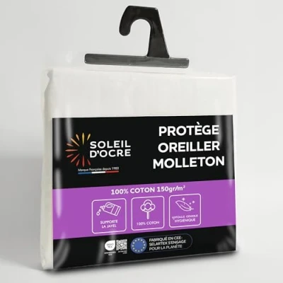Molleton Cotton Pillowcase Protector 50 x 70 cm Material: 100% cotton fleece Machine washable at 60°C Colour: white Fabric type: 100% cotton
