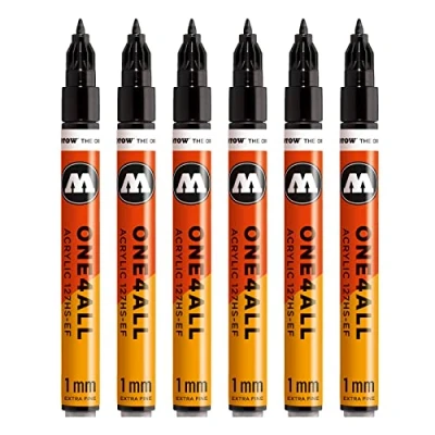 Molotow MO127101 ONE4ALL 127 HS EF Marker Pen, Black, Pack of 6