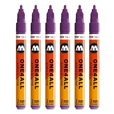 Molotow One4All 127HS Acrylic Marker (2.0 mm Line Width, High Coverage and Permanent, UV Resistant, for Almost All Surfaces) Pack of 6 Colour 042 Currant