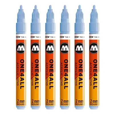 Molotow One4All 127HS Acrylic Marker (2.0 mm Line Width, High Coverage and Permanent, UV Resistant, for Almost All Surfaces) Pack of 6 Colour 202 Ceramic Light Pastel