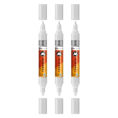 Molotow One4All Acrylic Twin Marker (1.5 and 4.0 mm Line Width, High Coverage Permanent, Quick Drying, Refillable, for Almost All Surfaces) Pack of 3, Colour 251 Glossy White