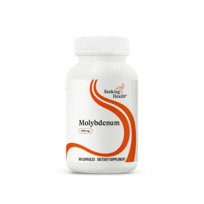 Molybdenum by Seeking Health contains the trace mineral molybdenum, in chelated form, which makes it easier for the body to break down and use. Molybdenum is important for breaking down sulphur, which some people may struggle to break down. Therefore, this supplement may be beneficial for those who experience side effects from consuming high sulphite foods such as lime and lemon juice, dried fruits, and wine. - May help to reduce symptoms from consuming sulphur or foods high in sulphites like red wine - Supports detoxification and the breakdown of other substances in the body - May help to support cell health - May be beneficial for dental health - Can help to support carbohydrate and fat metabolism - May help to support healthy iron levels Molybdenum is a trace mineral that has an important role in supporting the sulphite oxidase (SUOX) enzyme to convert sulphites into less problematic sulphates. Some people can experience side effects after consuming high sulphite foods such as red wine, lime and lemon juice and dried fruit if their ability to break down sulphite it impaired. This could be due to having a deficiency in the SUOX enzyme, or a deficiency in molybdenum. High sulphite levels in the body can cause headaches, sinus problems, skin issues, unwanted body odour, flushing, and other uncomfortable allergy-like symptoms. Taking a molybdenum supplement may therefore be beneficial for these people. Molybdenum is also an important mineral for helping the body to break down and detoxify other potentially harmful compounds, from substances such as medications or alcohol, and appropriately remove them from the body. Suggested use is 1 capsule daily.