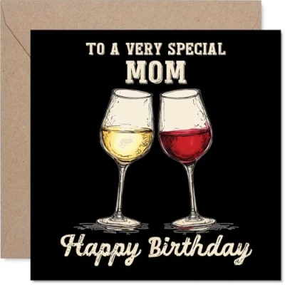 Mom Birthday Card Bday Wine Happy for from Son Daughter, 145mm Greeting Cards