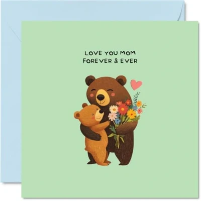 Mom Birthday Card Love You Forever Bears Happy Mother's Day for Mum from Son Daughter, 145mm Funny Humour Pun Bday Greeting Cards