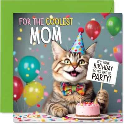 Mom Birthday Card Party Cat Happy for from Son Daughter, 145mm Celebration Bday Greeting Cards