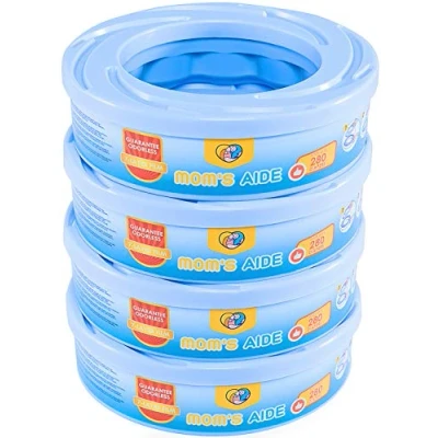 Our plastic bags are made from state-of-the-art high-barrier materials, which act like a metal wall to block gas molecules, effectively sealing in odors and preventing any leaks. Regular plastic bags, on the other hand, are made from PE material, which doesn't provide this gas-blocking capability Our plastic bags have two key features. First, they are crafted from high-barrier materials, and second, they consist of seven layers. As a result, our plastic bags offer unparalleled odor resistance, helping to keep your baby's nursery fresh! Mom's Aide is a high-quality product that moms can trust. Each refill cassette can hold a maximum of 280 diapers, and with four refill cassettes, you can store up to 1120 diapers Compatible with Angelcare and Litter Locker II,incompatible with Dress Up,Dress Up XL,Classic XL,LitterLocker Fashion