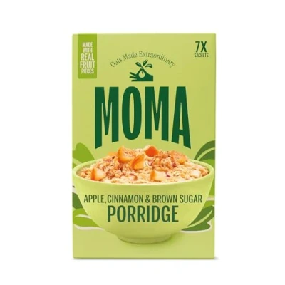 MOMA Apple, Cinnamon & Brown Sugar Porridge Sachets 7 x 40g Made with British Wholegrain Jumbo Oats High in Fibre Plant Based Contains Real Fruit Pieces Vegan