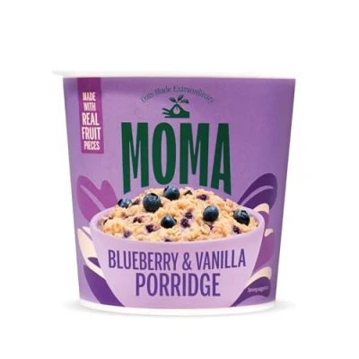 MOMA Blueberry & Vanilla Porridge Pot 65g Made with British Wholegrain Jumbo Oats High in Fibre Protein Ready 3 Minutes Contains Real Fruit No Added Sugar