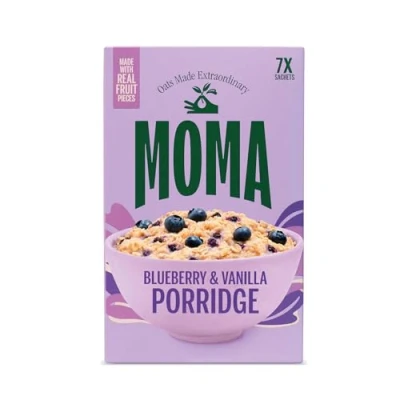 MOMA Blueberry & Vanilla Porridge Sachets 7 x 40g Made with British Wholegrain Jumbo Oats High in Fibre Low Saturated Fat Ready 2 Minutes Contains Real Fruit Pieces Vegan