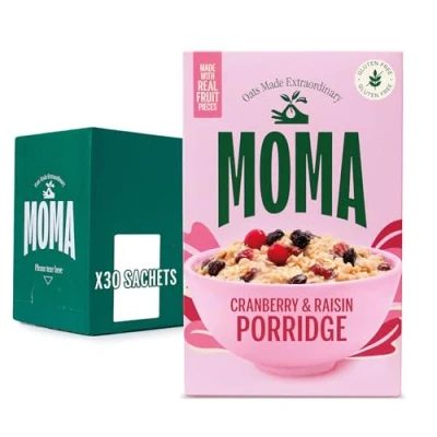 MOMA Cranberry & Raisin Porridge Sachets 40g x 30 Made with British Wholegrain Jumbo Oats High in Fibre Ready 2 Minutes Contains Real Fruit Pieces Vegan Plant Based