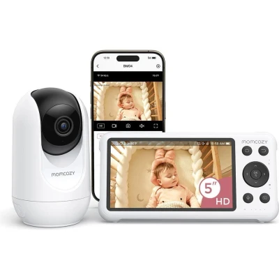 Nap time should be peaceful, and this Momcozy baby monitor helps make it just that. Its 1080p HD camera and 5" LCD touchscreen let you keep a watchful eye on your little one without tiptoeing into the room. With a wide 350° field-of-view, you can see more of their space. You'll feel as if you're right by their side. And with up to 4x digital zoom, you'll catch every sleepy smile and tiny movement. Good to know - The crying detection gently alerts you when your little bundle of joy needs attention - Soothe your baby with your voice using two-way audio or play lullabies to help settle them - With its night vision, you'll have a clear view of your baby even when it's dark - The 5000mAh rechargeable battery gives you up to 11.5 hours of us, so it'll last all night