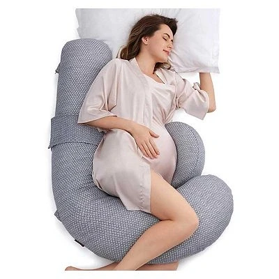 - This Momcozy pregnancy pillow wraps around your belly so you can sleep comfortably - No more feeling achy when you wake up - it supports your hips, knees and legs - The F-shaped design lets you sleep on your side with great back support