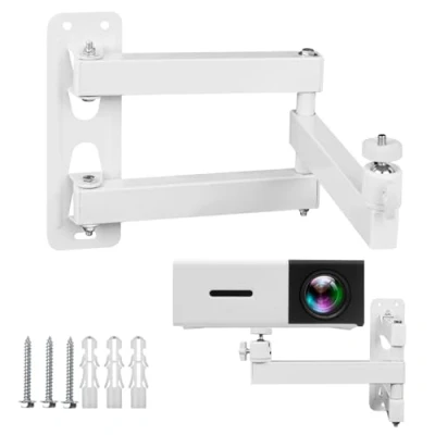 momgyaamz Wall Projector Mount in White, Adjustable Multi Angle Metal Bracket for and Monitor Mount, Equipped with 1/4 Inch Screw Interface Articulated Arm