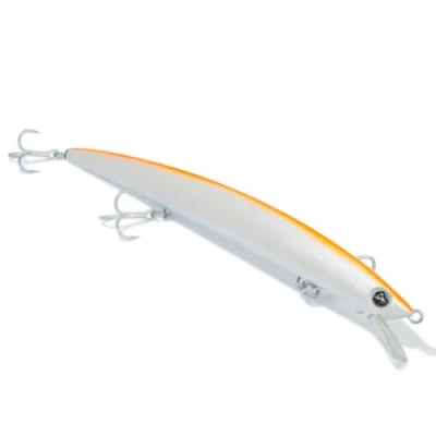 Long jerk minnow, slow sinking. The evoluzione del Mommotti 180 SS. Struttura ABS – Lunghezza: 180 mm – Weight: 29 g. Depth: 60-90 cm Armatura passante e ancorette BKK 4x strong break round treble #4, resistenti alla corrosione marina Assetto leggermente ribassato in testa per una maggiore reattività. Lanci ancora più lunghi Perfetto per catturare tutti i predatori sia marini che di acqua dolce