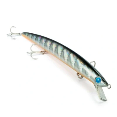 Long jerk minnow, slow sinking. The evoluzione del Mommotti 180 SS. Struttura ABS – Lunghezza: 180 mm – Weight: 29 g. Depth: 60-90 cm Armatura passante e ancorette BKK 4x strong break round treble #4, resistenti alla corrosione marina Assetto leggermente ribassato in testa per una maggiore reattività. Lanci ancora più lunghi Perfetto per catturare tutti i predatori sia marini che di acqua dolce