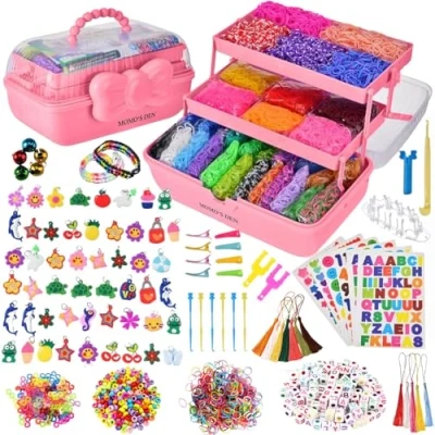 17,000+ Loom Bands in 32 Vibrant Colors: This kit includes over 17,000 loom bands in a wide range of 32 vibrant colors, giving kids everything they need to explore their creativity and make endless patterns. The high elasticity and durability of the bands ensure a smooth and enjoyable crafting experience. Packed with 30+ Accessories for Complete Bracelet Making Fun: This all-in-one kit comes with everything needed for endless creativity: 600 bracelet connectors (300 colored + 300 transparent), 300 pony beads, 150 alphabet beads (A–Z), 52 rubber charms, 5 claw clasps, 5 tassels, 8 hair clips, 6 stickers, 6 small craft hooks, 1 large craft hook, 5 small loom boards, 2 Y hooks, and a bell. Designed to offer kids a full DIY experience with multiple styles, textures, and decorative options. Unleash Endless Creativity: With 17,000 vibrant loom bands, this all-in-one kit empowers kids to design unique bracelets, rings, necklaces, headbands, charms, and more. A perfect way to spark imagination and keep little hands happily creating for hours. Upgraded 3-Layer Storage Box : Neat, Sturdy & Portable, comes with a newly designed 3-layer storage box that keeps all accessories sorted, secure, and easily accessible. Perfect for staying organized at home or taking creativity on the go. Perfect Gift for Any Occasion: Whether it’s Christmas, birthdays, Easter, New Year, or just because, this vibrant loom band kit makes a thoughtful and fun DIY gift for both boys and girls. A sure way to bring joy and creativity to any celebration.