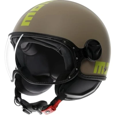 MOMODESIGN FGTR CLASSIC E2206, Jet Helmet, Open Helmet for Motorcycles and Scooters, Men Women, Matt Sand/Lime, XL