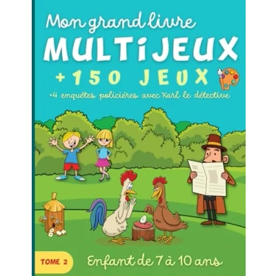 Mon grand livre Multijeux Tome 2: pour enfant de 7 à 10 ans. Plus 150 jeux éducatifs et amusants en couleur. + 4 enquêtes policières avec Karl le détective. (Livre enfants)