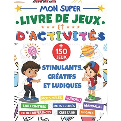 Mon Super livre de jeux et d'activités: cahier d'activité XXL dès 7 ans + 150 stimulants ludiques mots mêlés, Sudoku 6x6 9x9, ... bande dessinée, Enigmes cadeau fille garçon
