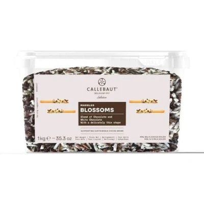 Mona Lisa Blossoms by Callebaut (Marbled Chocolate, 1kg Tub) Belgian Chocolate Curls/Shavings for Decorating and Topping Cakes, Cupcakes, Gateaux, Desserts, Waffles, Crepes, etc