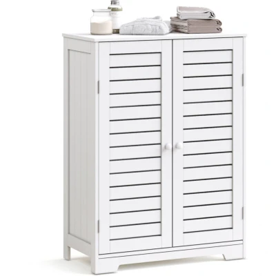 Spacious & Adjustable Interior : Make organisation easy with two roomy compartments, one featuring an adjustable shelf to fit your taller items. The louvered doors swing open a full 180 degrees, giving you complete and easy access to everything stored inside. Modern Design with Built-in Ventilation : The stylish white finish and chic louvered door design add a contemporary touch to any room. Beyond good looks, the slats allow for continuous air flow, helping to prevent stuffiness and protect your stored items from damp and mildew. Versatile Around Your Home : This cabinet is incredibly adaptable. While perfect for bathroom storage, its elegant design also makes it ideal for use as a handy kitchen pantry, a hallway console, or even a discreet bedroom sideboard. Built to Last & Family-Safe : Crafted from sturdy, water-resistant MDF that stands up to humidity and is a breeze to clean. For added peace of mind, an anti-tip kit is included to securely anchor the unit to your wall, ensuring