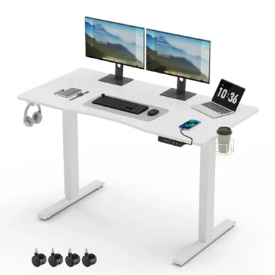 Mondeer Electric Standing Desk, Height Adjustable Sit Stand Desk with USB Charging and 3 Memory Smart Pannel, 120x60cm, Home Office White