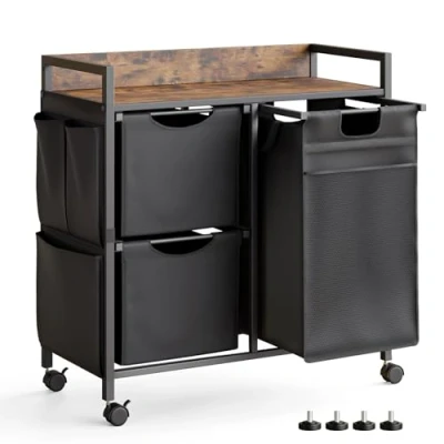 [Large Storage, Smart Sorting] With one 50L bag for bulky laundry and 2 x 25L bags designed for underwear & socks, this cart's 4 compartments simplify all your family laundry sorting. [Integrated Storage Hub] The sturdy top shelf holds detergents, while the side pocket organises smaller items. Everything you need is within reach and tidy. [Smooth Moves, Secure Stops] Glide effortlessly on 4 castors (2 with locks). For permanent stability, 4 adjustable leveling feet are included to replace the wheels, creating a solid, stationary storage base. [Rock-Solid & Reliable] The top shelf holds up to 30kg. Each bag has a reinforced PP board to prevent sagging and secure stoppers for safe use. [Quick Assembly] Get started right away! The cart is designed for quick and easy setup without any tools needed., Manufacturer: Mondeer
