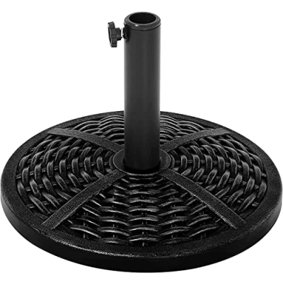 Mondeer Parasol Stand, Umbrella Plastic, 12 kg, Holder in Rattan Look, Retro, Round, Black, Diameter 45 x 30 cm