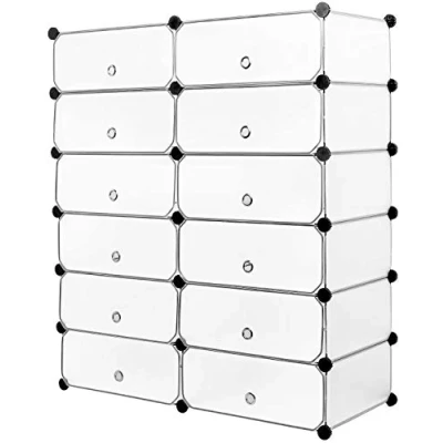 Mondeer Shoe Rack Standing Storage Shelf Organiser with Dustproof Cover (White, 91 x 36 105 cm, 12 Cubes, Modern Style, Entryway)