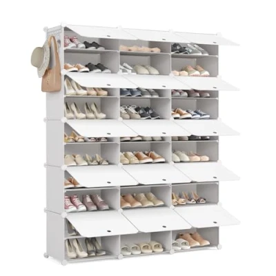 Mondeer Shoe Storage Cabinet, 3 x 10 Tier Modular Plastic Rack for 60 Pairs Shoes, Cube Organizer with Removable Shelf and Hooks, Hallway Entryway Closet, White
