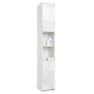 Mondeer Tall Bathroom Cabinet, Slim Storage Cabinet with 2 High Gloss Doors and 6 Shelves Adjustable Modern, 30 x30 x184 cm White