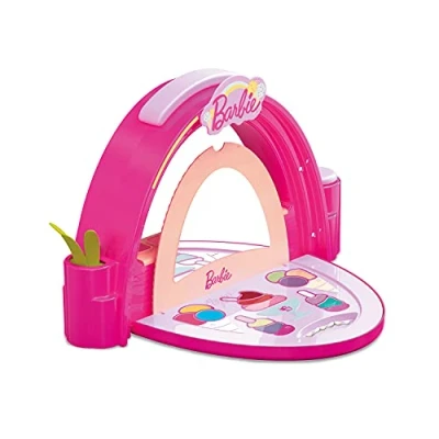 Barbie Ice Cream Shop , Makeup Set - This fantastic Barbie makeup set includes 8 lip glosses, 4 compact eyeshadows, 12 compact eyeshadows, applicators, 5 nail files, mirror and led lights Double function Make up or Barbie ice cream parlor - This item can be used as a complete make up set for your little girl but also as a fantastic ice cream parlor for your Barbie doll: inside there is a battery compartment for the lights (not included in the package - 2xAAA) Clean Beauty - Mondo has embraced the Clean Beauty philosophy for the creation of this article: the goal was to create a safe product from the point of view of materials and resulting from environmentally friendly production Made in Italy - The cosmetics inside this product are made in Italy, the products are also Cruelty Free or developed taking into account the ethical aspects as they do not contain materials deriving from animals Perfect for a gift - These Barbie Make up or Ice Cream items are perfect for a gift to your little girl on any occasion: Christmas, birthday, any ceremony, Manufacturer: Mondo