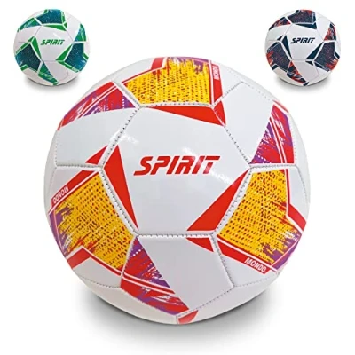 SIZE & WEIGHT - Ideal for your child's first kicks and youth recreational activity. Size 5 (68 - 70 cm). Weight 400 grams. The ball is delivered deflated Quality - 100% PVC Shining Cover. Soft surface and seamless construction with excellent grip and less water absorption OFFICIAL LOGO - Official SPIRIT crest printed on the cover. Assorted Colours Inflation pressure 0.5 - 0.7 bar - moisten the needle before inflation. PERFECT GIFT - Perfect ball as a gift to give to children or teenagers who have a passion for this sport and want to have fun
