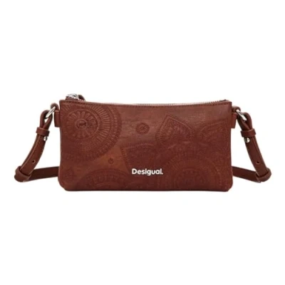Color: Solid with embroidered flowers Multiple interior pockets Zipper closure Detachable handle Leather effect