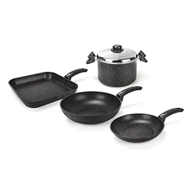 Moneta Etnea Student Set of 5 Pot and Pans, Stone Surface Non Stick Anti Scratch Coating, Dishwasher Safe, Piece Cookware