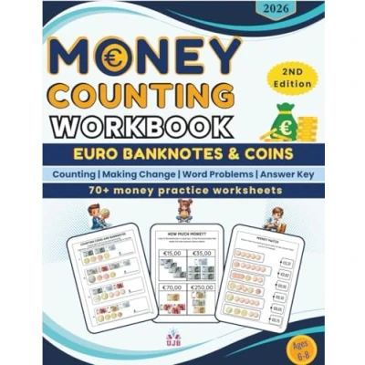 Money Counting Workbook for Euro Currency Coins and notes: book kids to learn