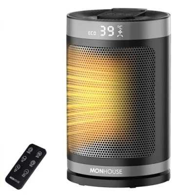 MONHOUSE Electric Heater Energy Efficient PTC Ceramic, Silent Portable with LED Display, Remote Control, Overheat Protection, Smart Thermostat, 1 12HR Timer Ideal for Office, Home, Bedroom
