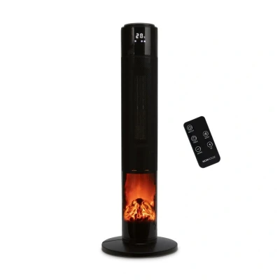 MONHOUSE Oscillating Tower Fan Heater with Fireplace 33 inches Portable PTC Ceramic Electric LCD Display, Remote Control, Overheat Protection and Safety tip over Switch Black