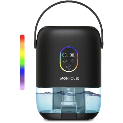 MONHOUSE Premium Dehumidifer 1000ml Ultra Quiet Electric Moisture Absorber 7 Colorful Nightlight, 2 Working Modes, Touch Screen, Auto Shut Off, Humidity & Temperature Indicator Black