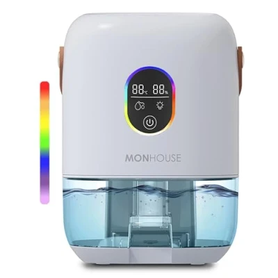 MONHOUSE Premium Dehumidifer 1000ml Ultra Quiet Electric Moisture Absorber 7 Colorful Nightlight, 2 Working Modes, Touch Screen, Auto Shut Off, Humidity & Temperature Indicator White