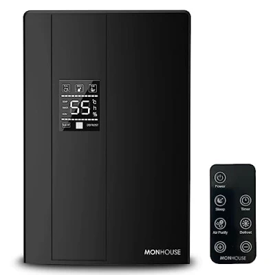 MONHOUSE Premium Dehumidifier for Home 2200ml Tank Remote Controlled, Sleep & Defrost Mode LED Display, 24 hr Timer Auto Shut Off when is Full Ultra Quiet Electric Damp Absorber Black