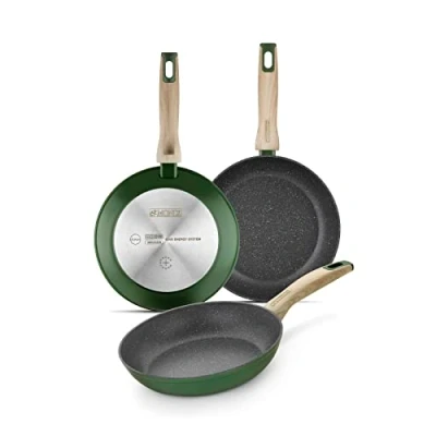 COMPLETE SET: The Amazonia collection offers a different product with this set of 3 frying pans including 18 cm (induction diameter: 13 cm), 22 cm (induction diameter: 16.5 cm), 26 cm (induction diameter: 20 cm). FORGED ALUMINIUM: Made of forged aluminium with a great thickness in the bottom (4 mm) allows us to cook with less energy in the stoves since the residual heat is better used. Recyclable materials: The use of quality materials results in functional pans with optimal performance. These materials, at the end of their useful life, are fully recyclable. NON-STICK: In the manufacture of its three-layer non-stick PFOA without PFOA Quantanium from Whitford, PFOA is not used, thus being totally environmentally friendly; and is that, in addition to providing a great non-stick and allowing cooking without oil, it saves energy, water and detergents given the ease of its cleaning and its FULL INDUCTION bottom gives the product an efficient magnetic transmission surface in induction cookers. WOOD EFFECT: Its heat-insulating bakelite handles and handles and soft touch coating with wood effect give Amazonia a design with natural, soft and contemporary nuances. Suitable for all types of cookers: suitable for all types of hobs (including induction). Its FULL INDUCTION bottom gives the product an efficient magnetic transmission surface in induction cookers., Weight: 6.1508971098 pounds, Manufacturer: Isogona