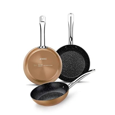 Monix Copper 20 24 28cm Cast Aluminium Frying Pan Set with Non Stick Titanium Particles Suitable for All Cookers Including Induction